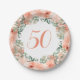50th Birthday Peach Floral Watercolor Paper Plate