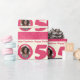 50th Birthday photo fun cream pink wrapping Paper