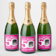 50th birthday white text on hot pink photo party paper sparkling wine or wine labels. Great to add a personal touch to a surprise fiftieth birthday party or to put on your party tables. Personalise with your birthday girls photo in the 0 of 50 and personalise with your choice of name. Other matching items are available. Designed by www.mylittleeden.com