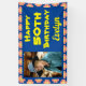 Hang this colourful 50th Birthday Pink Flower Photo Banner to celebrate her special day. Personalise it with her photo, name, and age. This bold floral banner features pink blossoms and a bold blue background with bright yellow text.