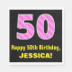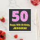 50th Birthday: Pink Stripes and Hearts "50" + Name Napkin