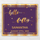 Elegant and modern for a 50th birthday party. Purple backdrop and faux gold text written with a trendy hand-lettered style script: hello fifty with golden dots as decor. Templates for name and date, golden letters. You can change the background colour to match your theme. Click customise and then "select a background colour" on your right.