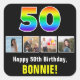 50th Birthday: Rainbow “50”; Custom Photos & Name Square Sticker
