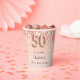 For a glamourous and girly 50th birthday party. A rose gold gradient background. On the front and the back: Personalise and add a name and a date. Decorated with faux glitter dust. Nr 50 is written with a balloon style font.