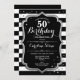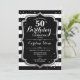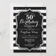50th Birthday - Silver Black White Stripes Invitation