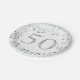 Pretty paper plates with a faux, silver foil, floral border and the number 50 done in a sparkling glitter effect. Personalise with a name and date. ALL DESIGN ELEMENTS ARE PRINTED, NO ACTUAL GLITTER OR SILVER FOIL.