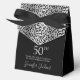 This elegant 50th Birthday Silver Leopard Print Thank You favor box with shimmering silver faux foil, the birthday girl's name in a trendy script font, and tied with an beautiful black bow would be perfect for your event. It would be great for a candy station, on a thank you gift table, or at each place setting with a favor. Be sure you order enough for all your guests.