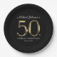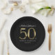50th Birthday Solid Gold Typography Elegant Black Paper Plate