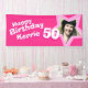 Celebrate a special 50th Birthday with this fun hot pink and white star fiftieth photo party banner. Personalise with a photograph of the fifty year old birthday girl. Great idea for adding some fun to a 50th birthday party. Can be used to show baby photos or other fun or embarrassing photos of your birthday girls 50 years. Exclusive design by Sarah Trett.