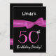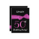 This black and pink design with its printed faux magenta bow is a pretty and elegant way to invite folks to a 50th birthday party celebration. All text is totally customisable. You can experiment with different paper types by clicking on the "Invitation Options" tab on the upper right hand corner. This design is featured on a premium ice hued metallic paper, which will give your birthday invitations a festive shimmer and shine.