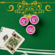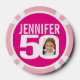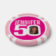 50th happy birthday custom name now and then photo pink poker chips. Fun fiftieth birthday party personalised chips with your own two photos in the middle of the number 0 in 50 on the front and back ideal for a past and present photo. A great idea for adding some fun to a milestone fiftieth birthday party event, or a gaming 50th birthday get together. Other matching 50th birthday party items are available. Designed by www.mylittleeden.com