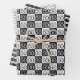 50th Birthday White Black Typography Stripes Check Wrapping Paper Sheet