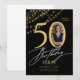 50th Birthday with Photo Elegant Black & Gold Invitation