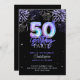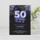 50th Blue Purple Fireworks Foil Balloon Birthday Invitation