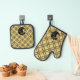 50th Gold Wedding Anniversary Oven Mitt & Pot Holder Set - featuring gold and black glitter with floral black glitter and the Golden glitter couple, this Oven Mitt & Pot Holder Set can be an unique, elegant, chic 50th Wedding Anniversary gift. This design is made in this way in order to reflect the beautiful circle of life!