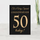A chic 50th Birthday Card for a 'Very Special Grandfather', with a number 50 composed of gold-effect numbers and the word 'Grandfather', in gold-effect, on a black background. The inside message, which you can change if you wish, is 'Happy Birthday'