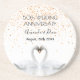 Two beautiful swans in love bending their heads toghether and forming a heart. With golden confetti. White elegant background, perfect for a gold wedding anniversary! A swan couple stay together for life, so they are the perfect symbol of love. With the text: 50th Anniversary. Template for two names, black letters.