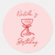 50th Hand Drawn Pink Bow Champagne Glass Birthday Classic Round Sticker
