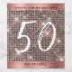 Modern trendy 50th birthday wine labels featuring number 50 on a rose gold & black shimmer background. Personalise with a name and a date.