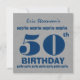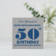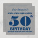 50th SURPRISE Birthday Party SILVER GRAY BLUE V19 This contemporary design with its big and bold lettering is a fun way to invite folks to a SURPRISE 50th birthday celebration. Text on card in totally customisable - You can also change the text or background colours for a different look. You can experiment with different paper types by clicking on the "Invitation Options" tab on the upper right hand corner. I recommend the ice hued metallic paper, which gives your birthday invitation a festive shimmer and shine.