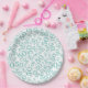 This cool numeric design is a teal and white random number pattern with a teal milestone number 50 repeated in varied sizes and angles over a white background.