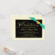 Create your own personalised 50th Wedding Anniversary Party Invitations -- Ivory and black with [printed] aqua ribbon and golden gemstone heart. Classic engraved-look typography with fancy vintage style swash script gold lettering -- Elegant, affordable luxury, and uniquely customised for you! Just add the names, date, and details for your special milestone anniversary celebration. **NOTE: All elements of this design are part of the PRINTED image -- the ribbon, jewelled brooch, and frame are NOT raised, embossed, or presented as real embellishments. Sized for small invitation cards. Click "Customise It" to change the size, paper options, or font choices. Other sizes and styles available in gallery. © Teri Francis. Coordinating sets with matching postage and thank you cards available upon request.