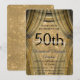 50th Wedding Anniversary Black and Gold Sparkle Curtains Party Invitations. These Black and Gold Fiftieth Wedding Anniversary Invitations can be customised for fifty years of marriage celebration.
