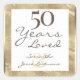 Lovely faux foil background with shimmering confetti highlights on the top and bottom border. Elegant and trendy design with fancy script typography. All text is adjustable and easy to change for your own party needs. Great elegant 50th wedding anniversary design. Available in different colours.