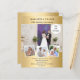 Create your own unique photo collage. Use four, 4 of your favourite photos. Personalise and add your names and party details. A faux gold looking background, black text.