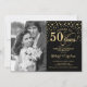 50th Wedding Anniversary with Photo - Gold Black Invitation