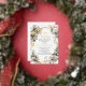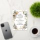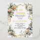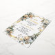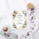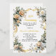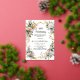 A white background. Decorated with white and yellow florals and a golden ribbon. Personalise and add a name and details.