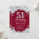 51st Birthday Burgundy Chalkboard Silver Diamond Invitation