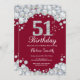 51st Birthday Invitation. Burgundy Silver Rhinestone Diamond Chalkboard Background. Elegant Birthday Bash invite. Black and White. Adult Birthday. Women Birthday. Men Birthday. For further customisation, please click the "Customise it" button and use our design tool to modify this template.