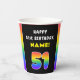 51st Birthday: Colourful Rainbow # 51, Custom Name Paper Cups