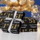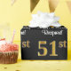 This sophisticated, elegant, and stylish birthday themed wrapping paper design features a large ordinal number “51st” having a faux/imitation gold-like look, plus the birthday greeting message “Happy 51st Birthday,” and a custom recipient name in a script-style font. The background is coloured black. Birthday themed wrapping paper like this might be used when giving a gift or present in celebration of somebody’s fifty first birthday. [~Z0000515]