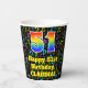This cheerful and joyful music themed birthday paper cup design features a large number “51” having a rainbow spectrum gradient inspired pattern. It also features the message “Happy 51st Birthday,”, and an editable name. The background features an exciting and colourful pattern of various music notes and symbols having a variety of colours and sizes. Vibrant, colourful paper cups like this might be fun to have at a birthday party/celebration being held in celebration of somebody’s 51st birthday. [~Z0000541]