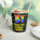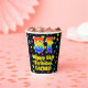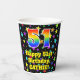 This cheerful and colourful birthday-themed paper cup design features a large number “51” having a rainbow spectrum gradient inspired pattern. It also features the message “Happy 51st Birthday,”, and a customisable name. The background features an exciting and colourful star field inspired pattern. Vibrant, colourful paper cups like this might be fun to use at a birthday celebration/party being held to celebrate somebody’s fifty first birthday. [~Z0000540]