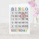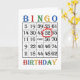 52nd Birthday card. Say Happy Birthday to a bingo player with a bingo card. The age is circled in red. A bingo crazy player will get a huge kick out of this card! Copyright Norma Cornes.