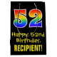 This exciting, fun, and colourful birthday-themed gift bag design features a large number "52" with a rainbow spectrum gradient inspired pattern, along with the message "Happy 52nd Birthday,", and a custom recipient name. It also has a black-coloured background. A birthday themed gift bag like this might be a fun way to wrap a gift or present being given to somebody who is celebrating their 52nd birthday. [~Z0000512]