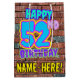 The front of this fun birthday themed gift bag design features the message “HAPPY 52ND BIRTHDAY,” having a colourful, vibrant, graffiti and urban street art inspired look, plus a customisable recipient name. The background features a brick wall inspired pattern. A gift-bag like this might be a fun way of wrapping a birthday present or gift being given to somebody who is celebrating their 52nd birthday. [~Z0000536]