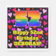 This fun and joyful birthday-themed paper napkin design features a large number “52” with a rainbow spectrum gradient inspired pattern, along with the message “Happy 52nd Birthday,”, and a personalised name. The background features a pattern of pink, red, and purple heart shapes of various sizes. Cheerful, happy paper napkins like this might be fun to use at a birthday party being held to honour somebody’s fifty second birthday. [~Z0000550]