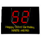 This geeky and silly birthday-themed gift bag design features a large number "52" with a red seven segment digital display inspired look, along with the message "Happy 52nd Birthday," and a custom name in nerdy yellow text, on a black coloured background. A customised gift bag like this might be used when wrapping presents or gifts being given to somebody who is celebrating their fifty second birthday. [~Z0000389]