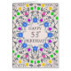 53rd Birthday card. A glorious abstract pattern with flowers and diamonds. A very pretty, feminine, and stylish way to say 'Happy Birthday'. An unusual design that stands out. Send your birthday wishes in an elegant and eloquent way. All the diamonds on this card are printed.