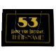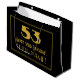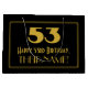 This vintage look 1920s-1930s appearance inspired birthday-themed gift bag design features a large art deco look inspired number "53", the message "Happy 53rd Birthday,", a customisable name, and a border pattern consisting of thin lines. It has a black-coloured background. A gift bag like this might be used when giving a gift or present in honour of somebody’s fifty third birthday. [~Z0000501]