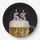 53rd Birthday Beer on black Paper Plate