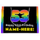 This upbeat and cheerful birthday giftbag design features the number “53“ with a colourful rainbow spectrum inspired gradient pattern, along with the message “Happy 53rd Birthday,”, and a personalised recipient name. Personalised birthday themed gift bags like this might be used when giving gifts or presents in celebration of somebody’s 53rd birthday. [~Z0000632]