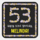 This fun, botany-inspired birthday-themed square sticker design has the message “Happy 53rd Birthday,” and a customisable recipient name. The large number “53” plus the border feature flower icons. Floral birthday themed stickers like these might be used or distributed at a birthday party celebrating somebody’s fifty-third birthday, or perhaps used when wrapping gifts/presents or preparing invitations for such an event. [~Z0000652]