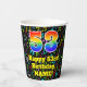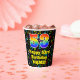 This joyful and exciting music themed birthday paper cup design features a large number “53” with a rainbow spectrum gradient inspired pattern, along with the message “Happy 53rd Birthday,”, and a customisable name. The background features a multicolored pattern having music notes and symbols of various sizes and colours. Colourful, vibrant paper cups like this might be fun to use at a birthday party/celebration being held to celebrate somebody’s 53rd birthday. [~Z0000541]
