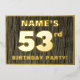 The front of this bold fifty-third birthday celebration foil invitation card features an editable name, a large number “53rd”, the message “BIRTHDAY PARTY!”, and a border, all in foil. The background of the front features a rustic, yet elegant, faux wood grain appearance inspired pattern. The back features personalised details about the event, such as the date, time, place, and any other information that may be important. Customised invitations like these might be used to invite attendees/guests to a birthday gathering being held to celebrate somebody’s 53rd birthday. [~Z0000598]