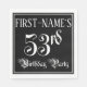 This fancy and luxurious birthday themed paper napkin design features a custom name and the message “53rd Birthday Party”. The large number “53rd” and the words “Birthday Party” are in elaborate script-style text, and the background is coloured black by default (although it can be customised). Ornate, opulent paper napkins like this might be useful at a birthday party being held to celebrate somebody’s fifty third birthday. [~Z0000563]